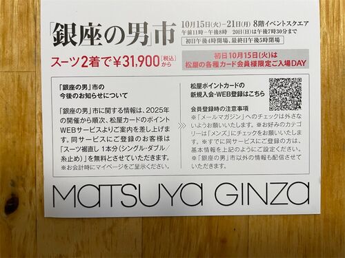 銀座の男、市、からハガキがきた。カード会員は15日から。それ以外は16日から。 今回は行けるか、わからん。 ところで、銀座、というワードにどのくらいのパワーがあるのだろうか? どのくらいのオシャレパワーがあるのか? なんとなく高級そうだっていうこ…